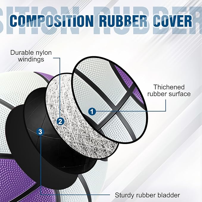 - Fine Touch and Control: the indoor basketballs are made from reliable rubber, wear resistant and soft; Each ball is equipped with a yarn wound bladder as standard, not easy to leak; The ball surface has small grains and deep channels, which provide better grip and good bounce passes; Quality material brings you the fine touch