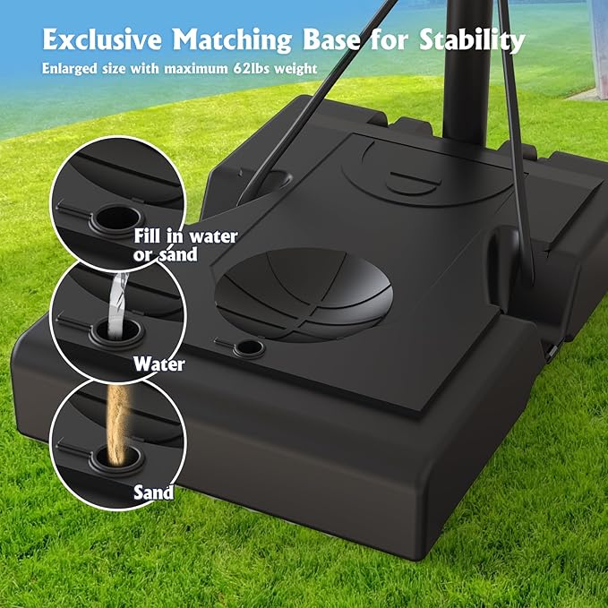 - 【Sturdy Base & Support】 Metal rods with an anti-rust coating support the entire structure in a triangular state. High-thickness PE base exhibit a high grip when filled with water or sand.