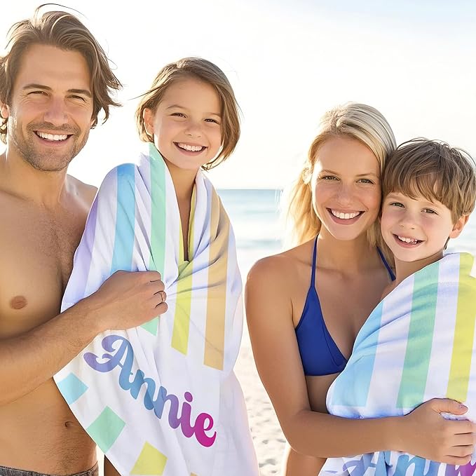 - Perfect Gift for Water Lovers: Whether it's for birthdays, summer vacations, Easter,Mother's Day,or just because, this personalized beach towel makes a delightful gift for swimmers, beach lovers, and sunshine chasers. Surprise your kids, partner, families, or friends with a unique and practical present they'll use all season long