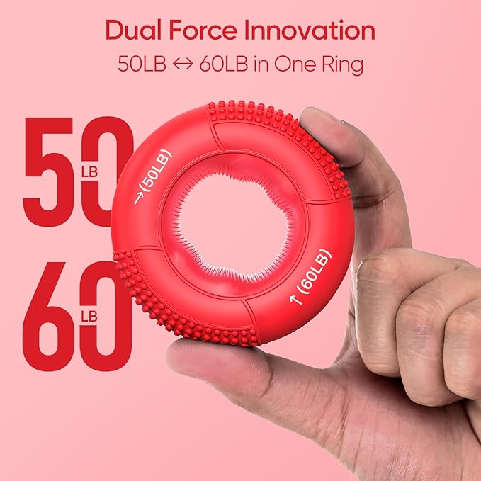 - ๐๐๐ฎ๐น ๐ฅ๐ฒ๐๐ถ๐๐๐ฎ๐ป๐ฐ๐ฒ ๐ฅ๐ถ๐ป๐ด๐ ๐ณ๐ผ๐ฟ ๐ฆ๐บ๐ฎ๐ฟ๐๐ฒ๐ฟ ๐ง๐ฟ๐ฎ๐ถ๐ป๐ถ๐ป๐ด: Each ring offers two resistance levels depending on how you squeezeโe.g., 30LB vs 40LBโgiving you double the value in one tool. Perfect for progressing from rehab to strength training without switching equipment.