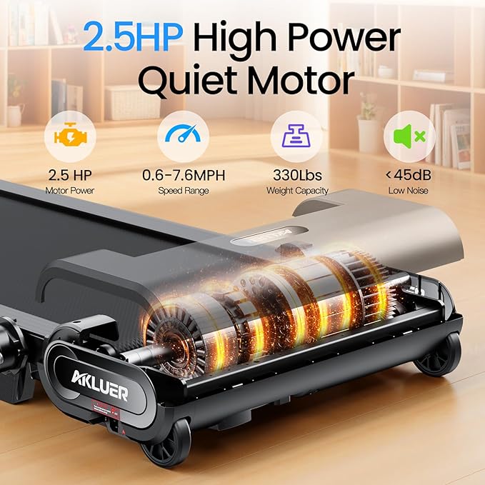- 【2.5HP Powerful Motor&0.6-7.6Mph Speed Range】Finehorse walking pad treadmill is equipped with a 2.5HP motor, which is stable and reliable, with a maximum weight capacity of 330 pounds and a speed of 0.6-7.6Mph. The 0.6-7.6Mph speed range can meet the need of exercise such as climbing, walking, jogging and running. Wireless remote control, easily adjust to the appropriate slope.
