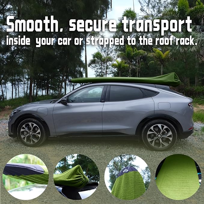 - đEasy to Use & Portable - Midweight, ultra-soft stretch knit fabric with a reinforced padded nose panel, offering a snug fit for your longboard as a Surfboard Day Bagâwhether inside car or strapped to the roof rack.