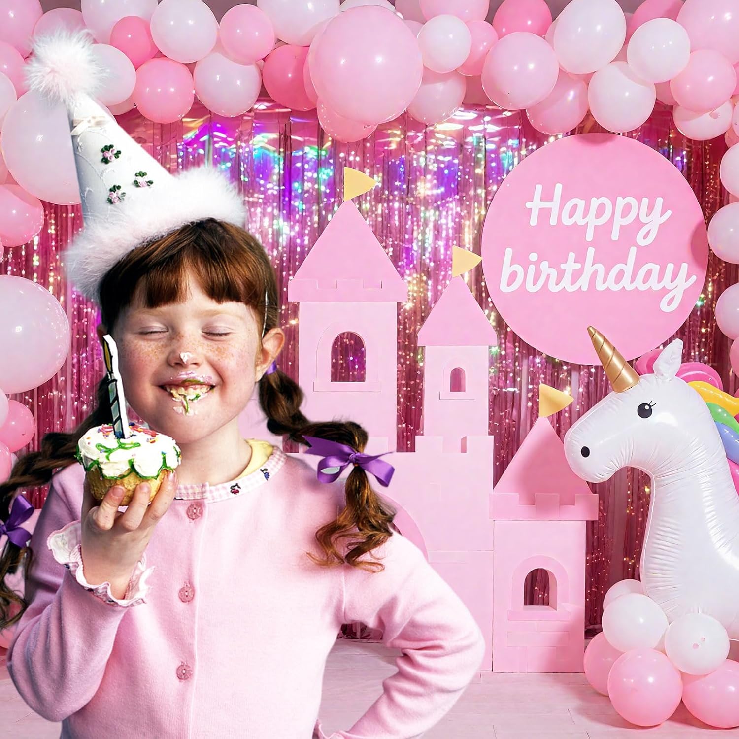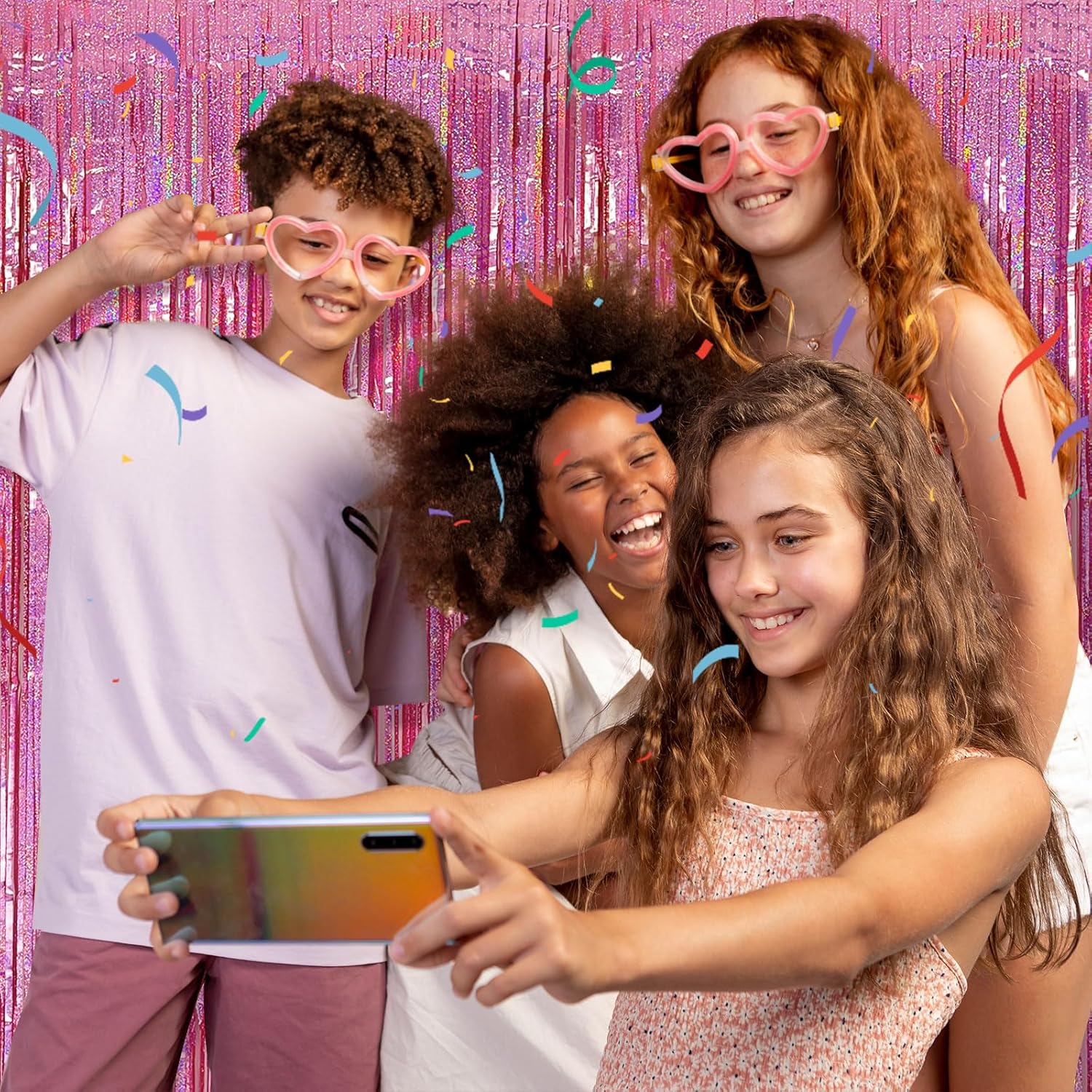 - Pink Fringe backdrop Set (10-Pack): Each dazzling curtain measures 3.28ft x 6.56ft – perfect for doors, walls, or photo booths! These extra-long foil streamers instantly transform any space into a party-ready celebration zone. Mix, layer, and customize your decor for the best results.