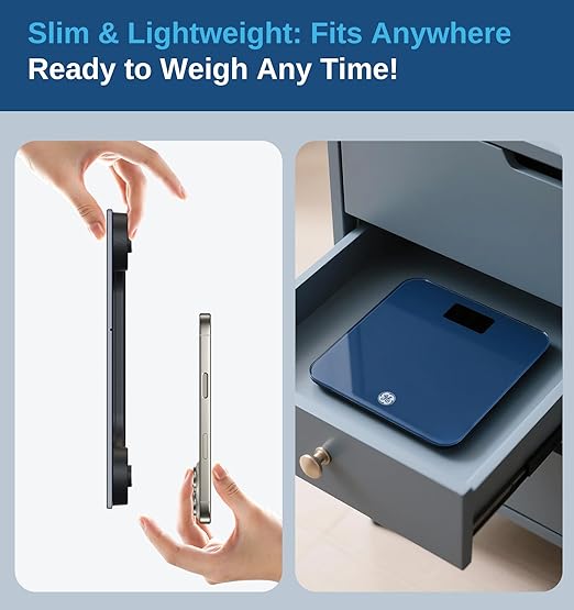- Sleek & Space-Smart Design: Engineered to last through 10,000+ rigorous step tests, our health scale delivers high precision with a 400lb capacity and the increments down to 0.1lb while maintaining an ultra-slim profile. The 11-inch compact size slides effortlessly under beds, bathroom cabinets, or office desks
