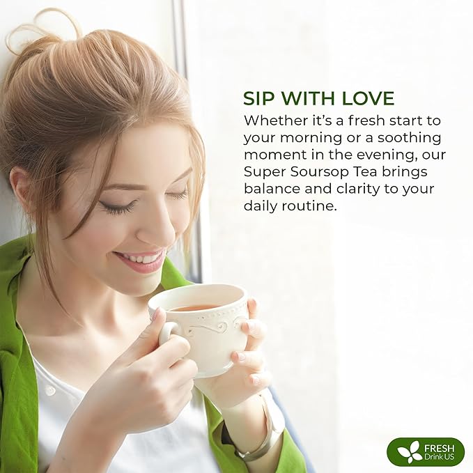 FreshDrinkUS, Super Soursop Herbal Tea โ 60 Tea Bags | Soursop, Ginger, Turmeric, Lemongrass, Cinnamon, Black Pepper & Peppermint | Caffeine-Free, Natural Flavor, Plant-Based Blend | Sugar-Free