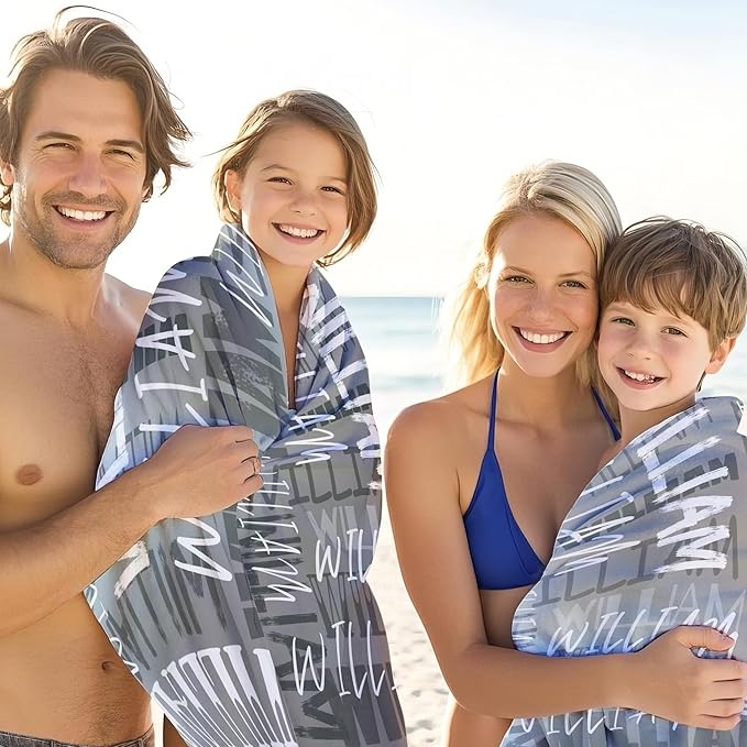- Perfect Gift for Water Lovers: Whether it's for birthdays, summer vacations, Easter,Mother's Day,or just because, this personalized beach towel makes a delightful gift for swimmers, beach lovers, and sunshine chasers. Surprise your kids, partner, families, or friends with a unique and practical present they'll use all season long