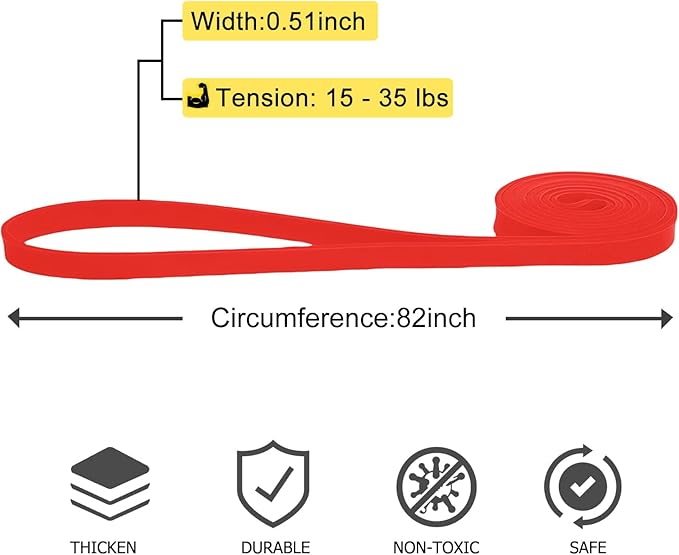 - Resistance Bands Levels: Pull up assist bands come in 3 resistance levels, and each color is different resistance and width for different purposes. Yellow(8-15 lbs), Red(15-35 lbs), Black(25-65 lbs)
