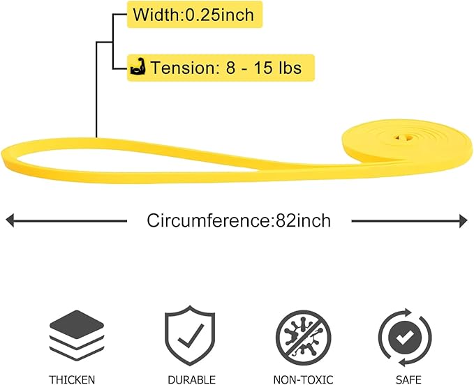 - Resistance Bands Levels: Pull up assist bands come in 3 resistance levels, and each color is different resistance and width for different purposes. Yellow(8-15 lbs), Red(15-35 lbs), Black(25-65 lbs)