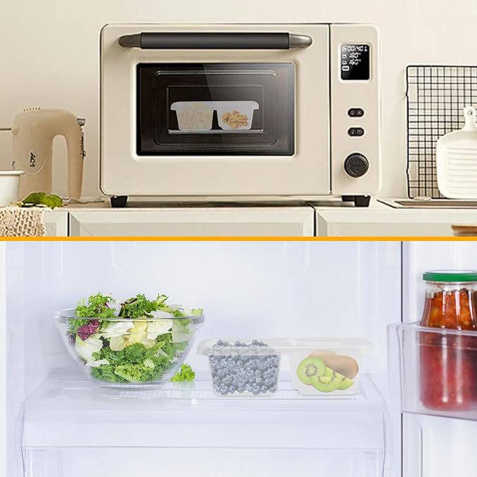 - Stackable & Travel-Ready – These compact containers are freezer-safe, dishwasher-safe (top rack), and microwave-safe (without lid). Ideal for outdoor activities, takeout sauces, or organized refrigeration.