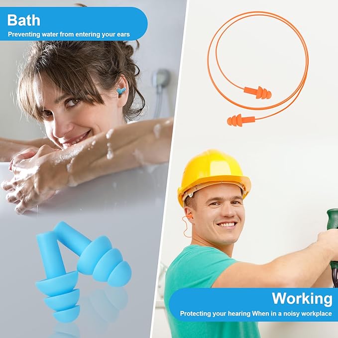 - Triple Protection - 3 layer design improves sealing ability and comfort, effectively reduces noise and has high water resistance. These earplugs are very suitable for sleeping, swimming, shooting, studying, noisy work environments, concerts, motorcycles, traveling by plane and loud events.