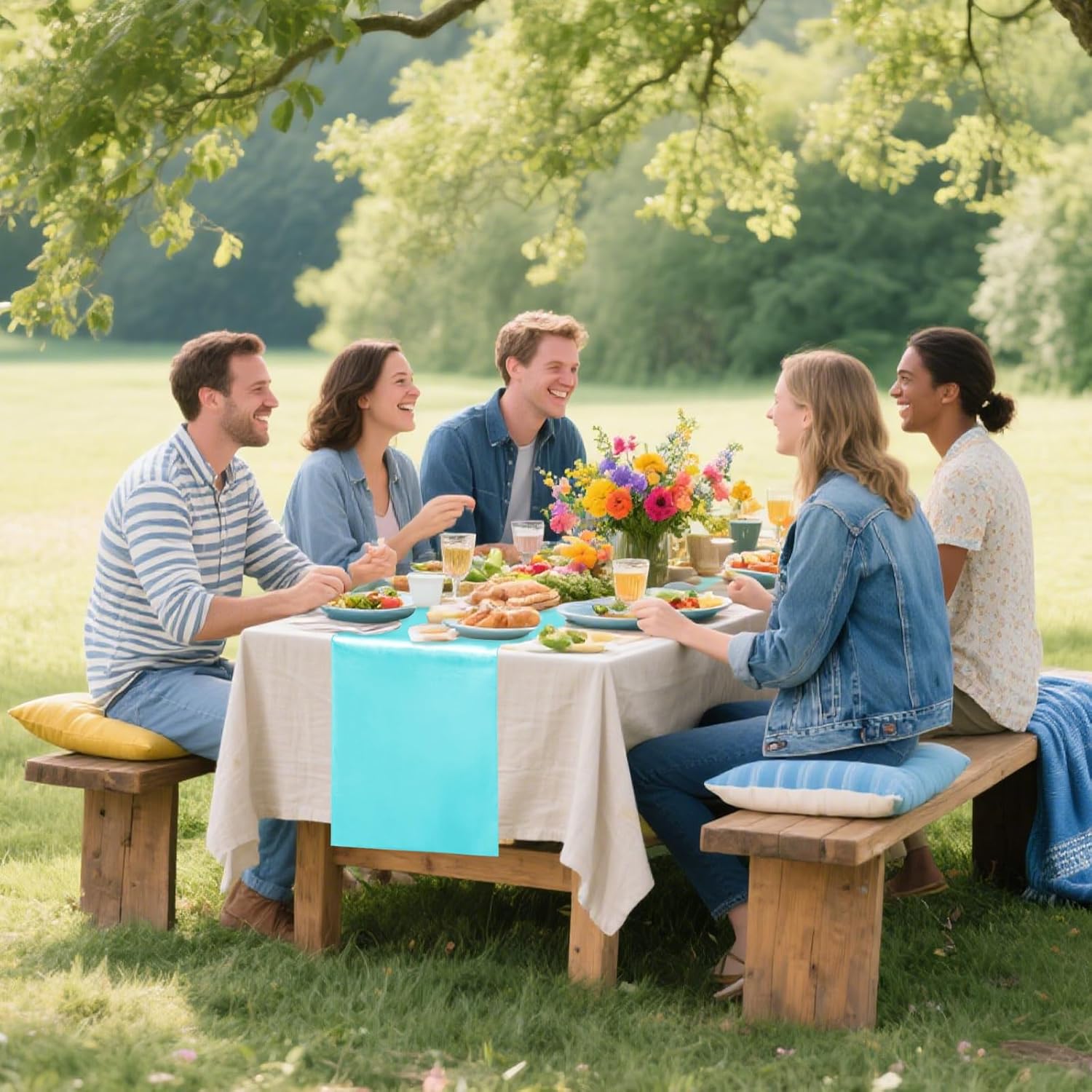 - Package Include: Each turquoise satin table runner measures 12" x 108", total 10 packs, which is appropriate for rectangle or round tables that can seat 8-10 people.