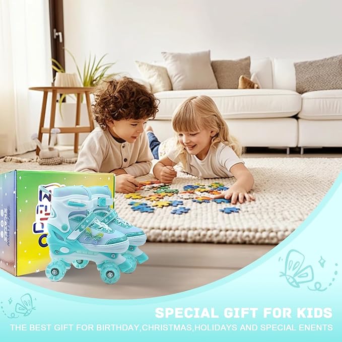 - 🦋【Stunning Butterfly Design &Flash Lights】No batteries needed!Lights automatically flash with every wheel rotation, adding magic to outdoor play.(No batteries needed)The colorful Hook & Loop straps + unique butterfly pattern make these girls roller skates a fashion statement—perfect for stylish girls!