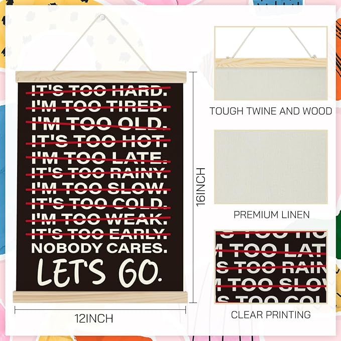 - 【Premium Quality Materials】Crafted from high-quality linen canvas, our poster features fade-resistant ink that ensures your motivational message lasts. The durable wooden frame with a convenient hanging rope makes it easy to display without any hassle—lightweight yet robust!