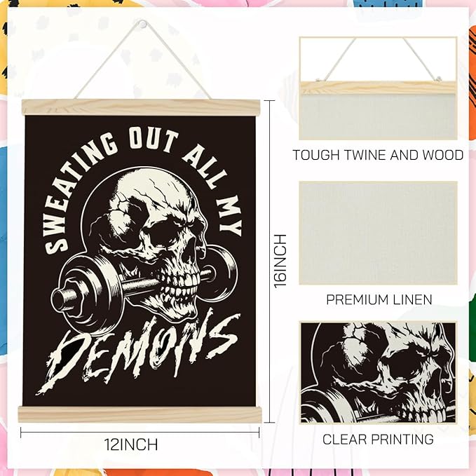 Gym Dumbbell Motivational Posters College Dorm Posters Gifts for Guys Friends Sweating Out All My Demons Gym Flag Wall Art Decor Sign for Home Gym Bedroom Office