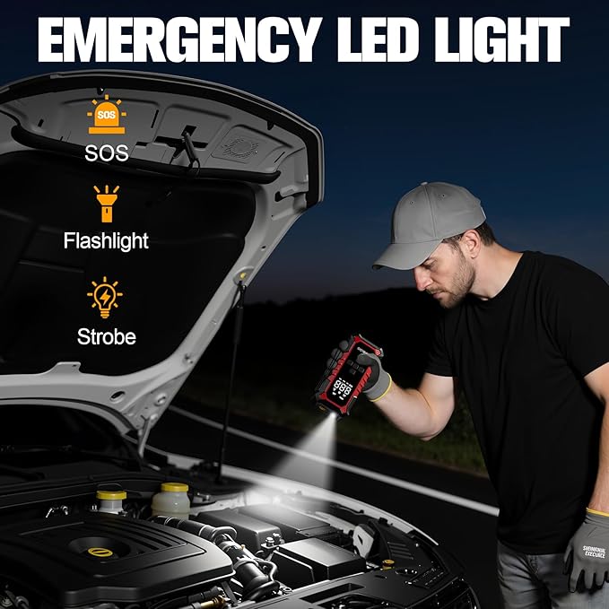 - MULTI-FUNCTION EMERGENCY LIGHT & LED DISPLAY: GOOLOO A6 Gear works as both an inflator and an emergency tool. This battery powered tire inflator features an ultra-bright LED flashlight with multiple modes (steady, SOS, and strobe), providing nighttime illumination for safe operation. And its large-font LED display ensures clear pressure readings even in bright sunlight.