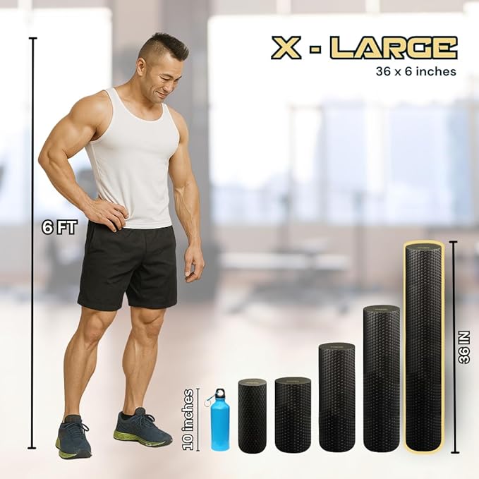 - ✅VARIOUS SIZES: Our muscle roller comes in 5 sizes (12 x 4 inch mini,12 x 6 inch small, 18-inch medium, 24-inch Large, 36-inch XL) to target various muscle groups. Great back roller for back pain & leg rollers for muscles.