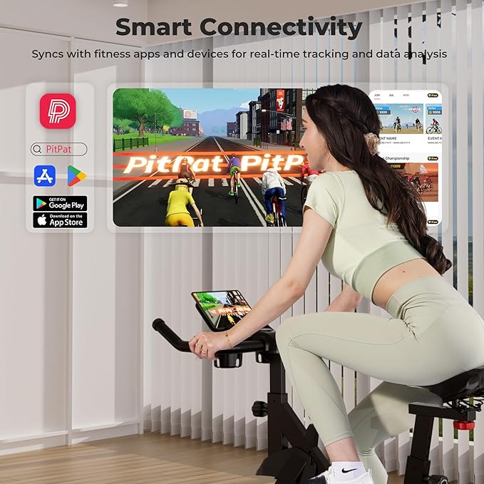 - 【Smart PitPat App Connectivity】Workout bike can Sync with the PitPat app to access personalized training plans, real-time progress tracking, and free professional courses. Stay motivated and transform your home workouts into engaging, goal-driven sessions