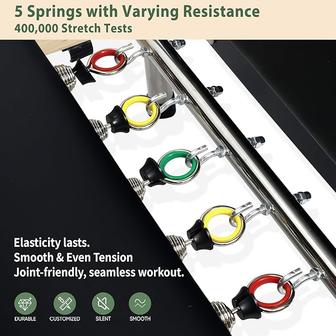 - German-Engineered Durable Springs: This foldable pilates reformer uses German-engineered springs that offer balanced resistance and long-term durability. They provide reliable support for users of all levels, from beginners to advanced practitioners