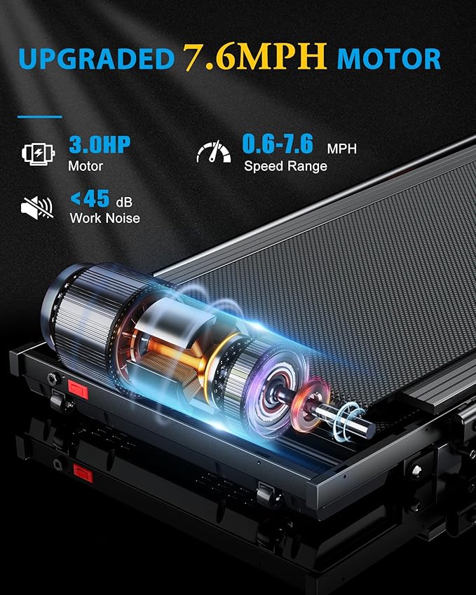 - 【3.0HP Peak Stronger Motor】The foldable treadmill with handrail bar features a powerful 2.5HP/3.0HP peak motor with speeds from 0.6 to 7.8 MPH and a 340 lbs capacity, meeting the training needs of every family member for walking and running