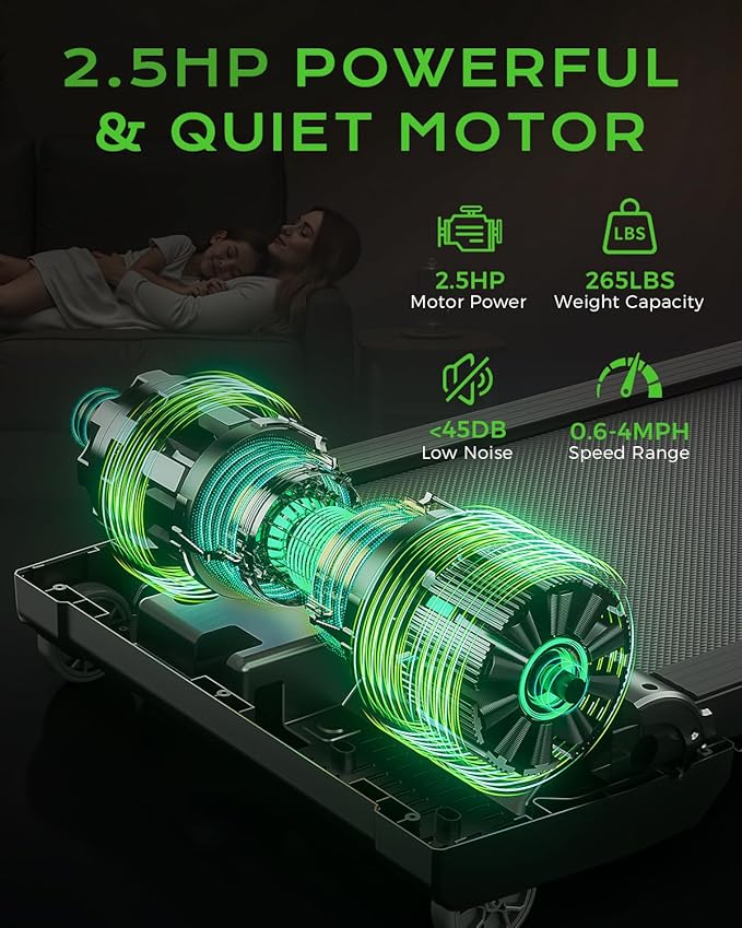 - [Powerful & Quiet Motor]: The auto incline treadmill with a powerful and quiet 2.5HP motor can withstand loads of up to 265 pounds. The internal noise reduction layer effectively controls noise levels to 45 decibels, treadmill machine for home avoids the worries of bothering other family members.