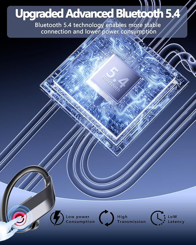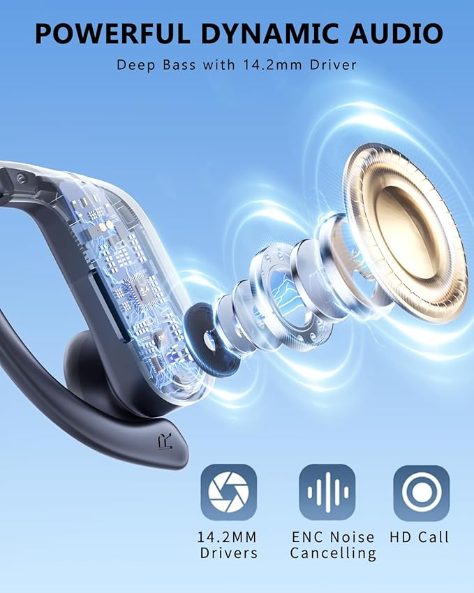 - Ear Buds Wireless Bluetooth Earbuds Crystal-Clear Audio & Deep Bass Performance: Experience high-fidelity stereo sound with 13mm driversin these noise cancelling earbuds over ear, delivering studio-grade bass and crisp treble. The in-ear structureand over-the-ear earbuds wireless bluetoothdesign create immersive acoustics for music, calls, and movies—twice the clarityof standard wireless ear buds.