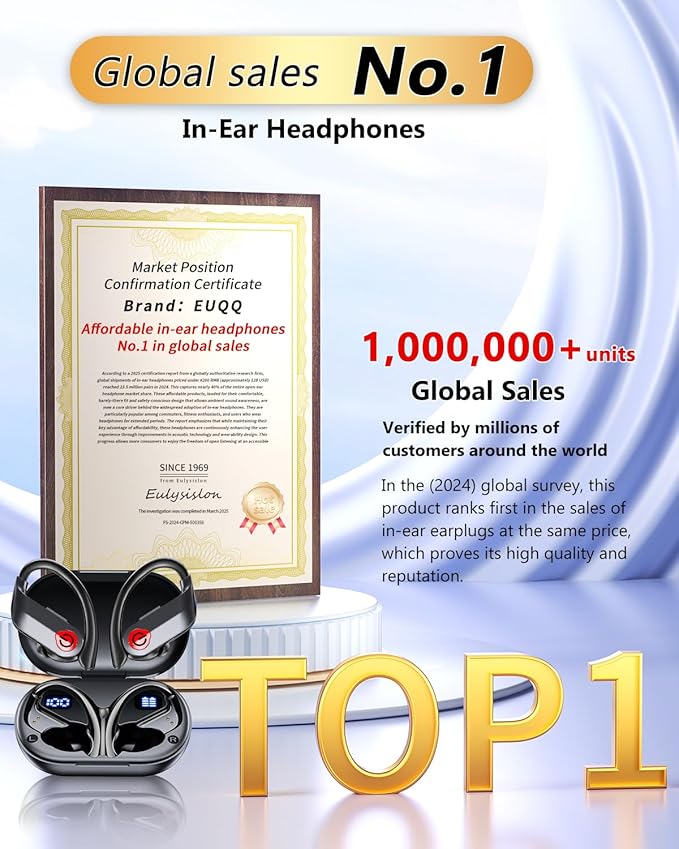 - Bluetooth Earbuds over ear 120h Playtime & Led Power Display: Outlast competitors with 120-hour wireless over the ear earbuds. The digital-display charging case shows exact battery levels—twice the enduranceof ordinary over ear buds. Never miss a beat during marathons or workdays.