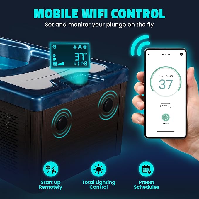 - πππππ πππππππ ππππππ: Take full control of your cold plunge experience with just a fingertip. The WiFi App control system lets you adjust water temperature, lights, and jets right from your mobile or the built-in touchscreen. Customize every session for your perfect plunge