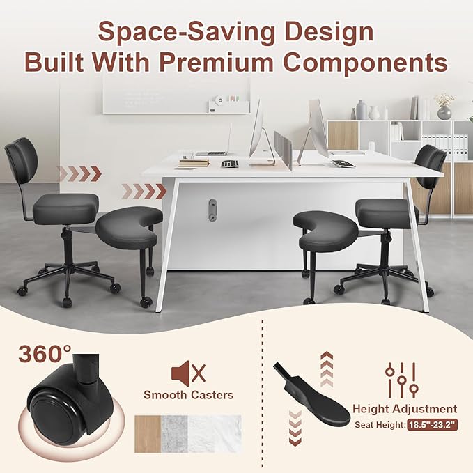 Meditation Chair Cross Legged ADHD Office Chair for Adults with Wheels Ergonomic Back Support and Leg Rest for Multi Position Criss Cross Sitting Kneeling and Yoga Height Adjustable, Leather Style