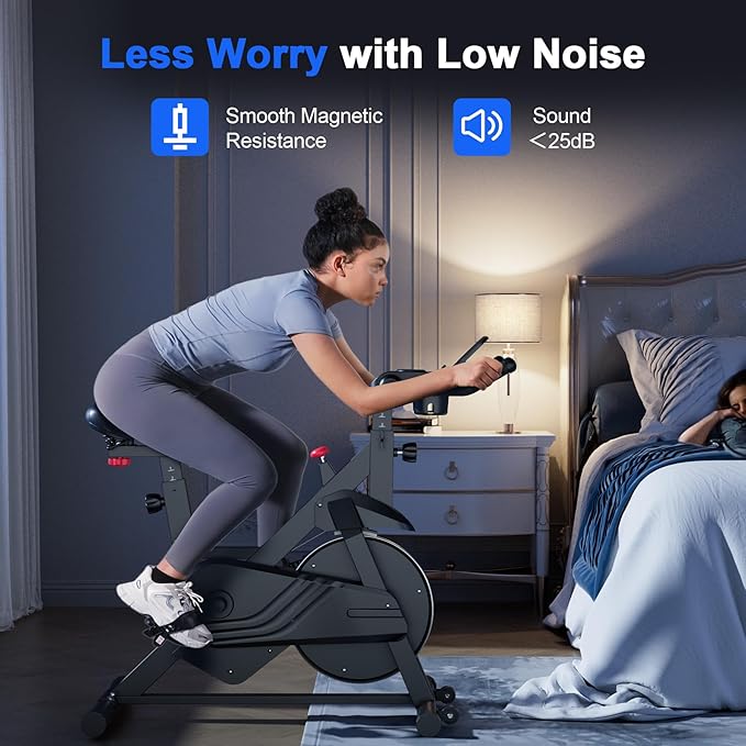 - 【Easy to Assemble】The design of this spin bike is very easy to assemble and it can be installed in no more than 20 minutes. It is equipped with built-in wheels at the bottom and can be easily moved from one room to another. Whether you have a dedicated fitness area or need to store after each use, this bicycle is the best choice